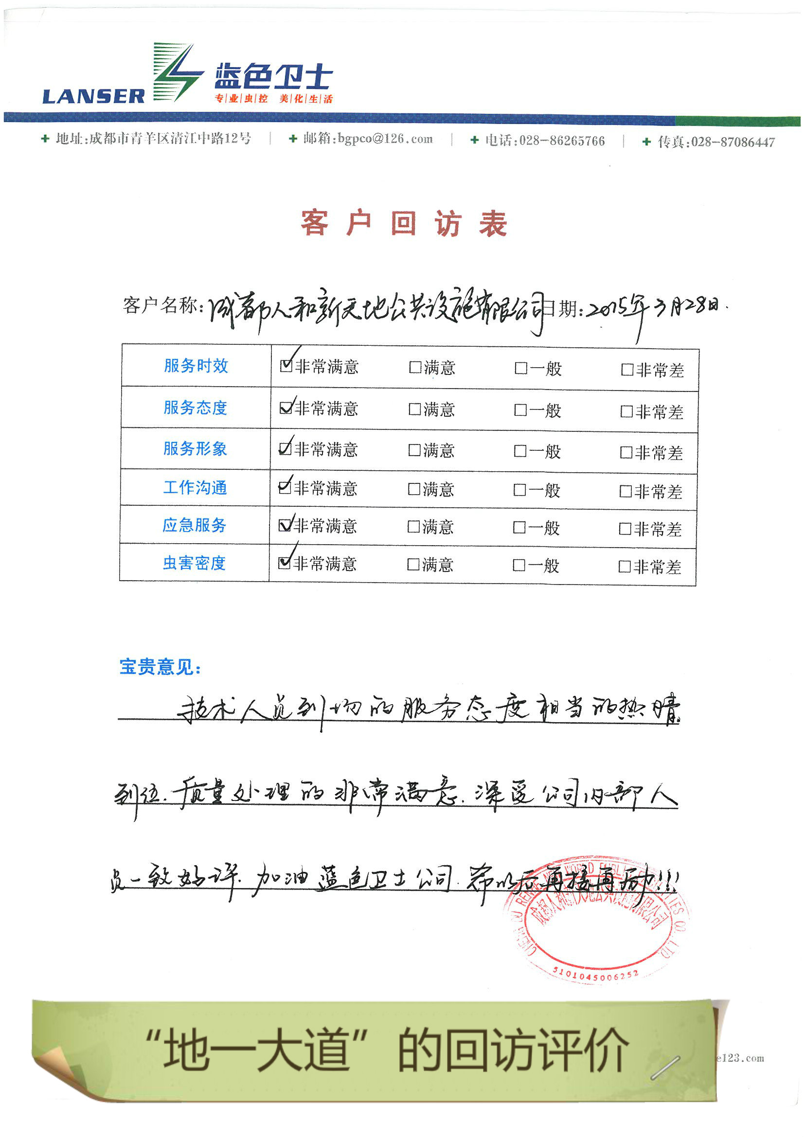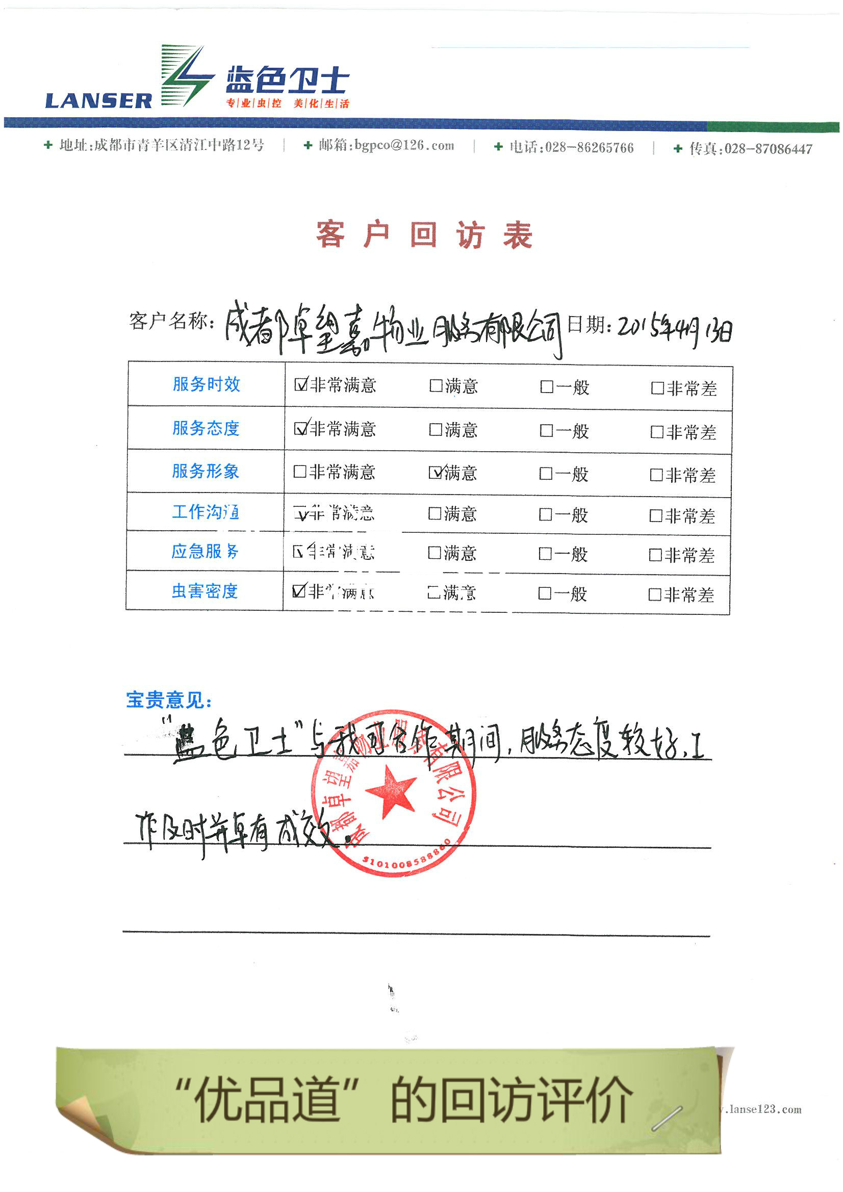 通過(guò)合作,對四害的消殺控制的很好,符合項目品質(zhì)要求!