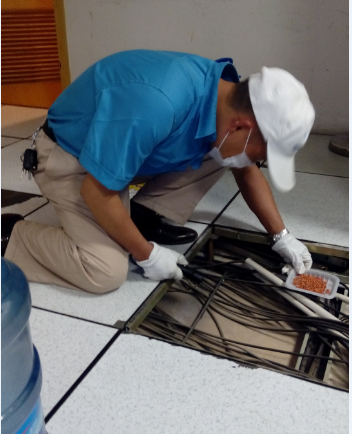 在機房、實(shí)驗室等一些放置了精密設備或儀器的地方,為杜絕潮濕、靜電等因素的影響,一般都在房間內設置了架空層,這一隱蔽的部位為鼠害的藏匿提供了良好的條件,在鼠害的防治工作中為不遺留死角,我們需要采用吸盤(pán)將其地面的地板取開(kāi),進(jìn)行檢查。
