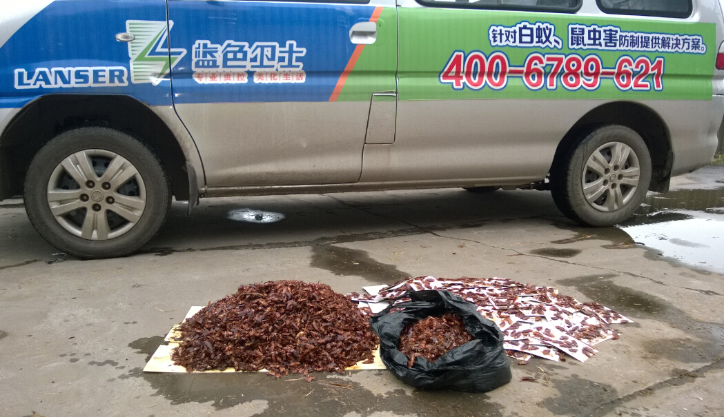 前不久我公司在省內某單位看展除蟲(chóng)工作時(shí),在剛入場(chǎng)的時(shí)候,該單位由于長(cháng)年乜有開(kāi)展滅蟑螂工作,因此蟑螂密度非常之高,庫房墻壁、下水道、墻體縫隙等地方隨處可見(jiàn),但客戶(hù)又要求采用純物理措施進(jìn)行,工作難度非常大,我公司在參考多種方法之后,通過(guò)吸捕、粘捕、燙殺、誘集等多種方案,最終有效的解決了客戶(hù)的蟑螂問(wèn)題。在每天進(jìn)行的蟑螂收集工作中,集中回收的蟑螂達數十公斤,整個(gè)工程完成統計匯總蟑螂尸體達數百公斤。