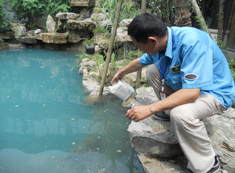 許多客戶(hù)單位內都有大量的景觀(guān)水體,而景觀(guān)水體中又放有魚(yú)類(lèi)等水生動(dòng)物,為此在對這一蚊蟲(chóng)孳生地處理時(shí),我們需要選用等水生動(dòng)物無(wú)毒的生物殺蟲(chóng)劑進(jìn)行蚊幼殺滅。
