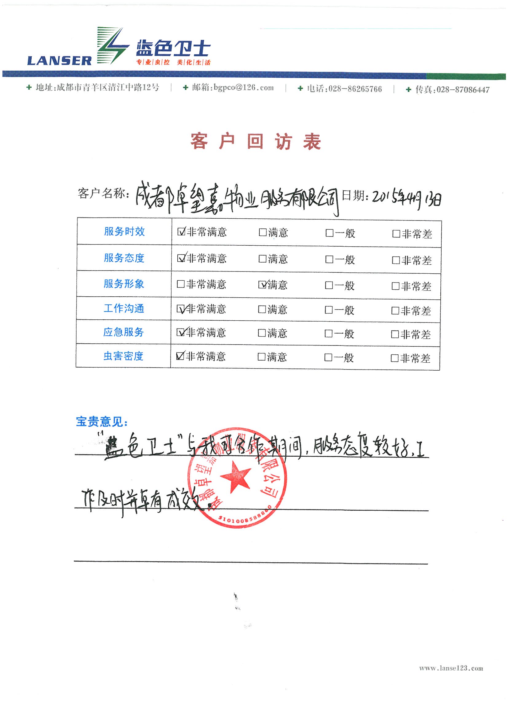 藍色衛士與我司合作期間,服務(wù)態(tài)度較好,工作及時(shí)并卓有成效!