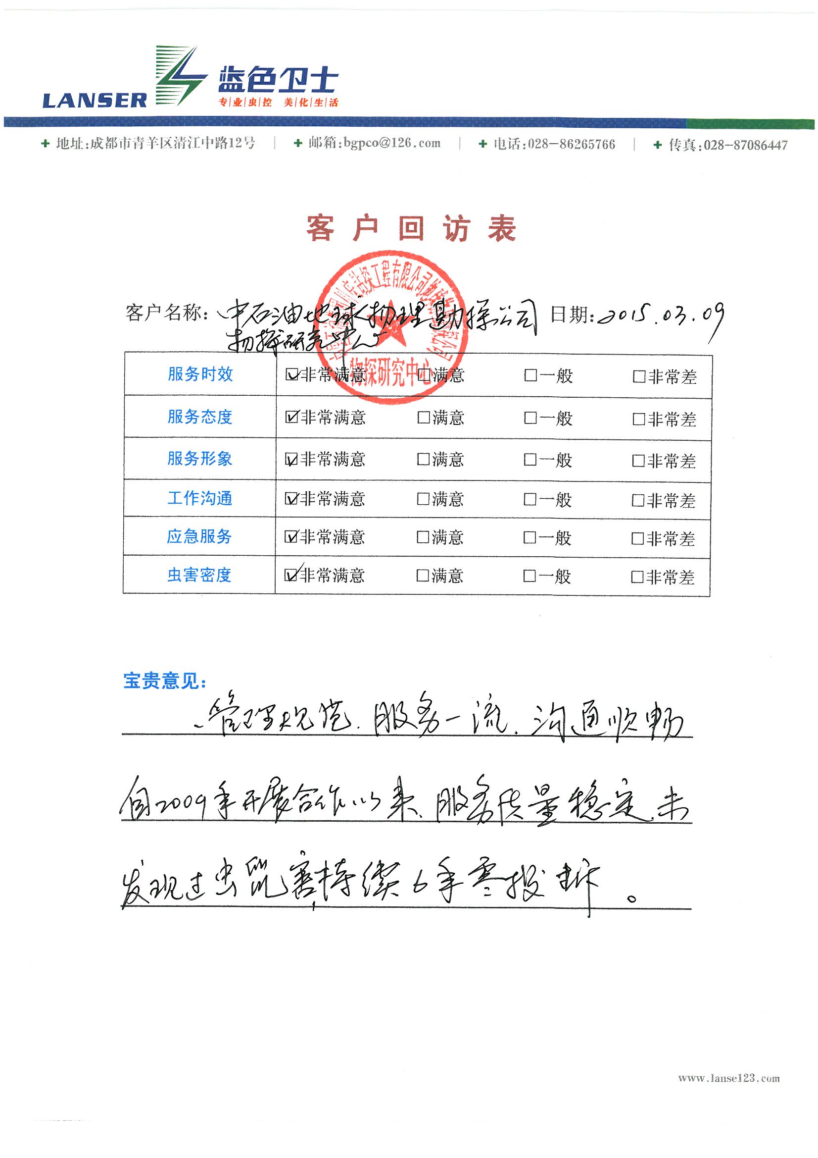 中石油物探公司的回訪(fǎng)評價(jià)